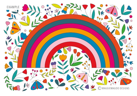 Rainbow Pdf Digital Download Colouring Sheet Embroidery Etsy